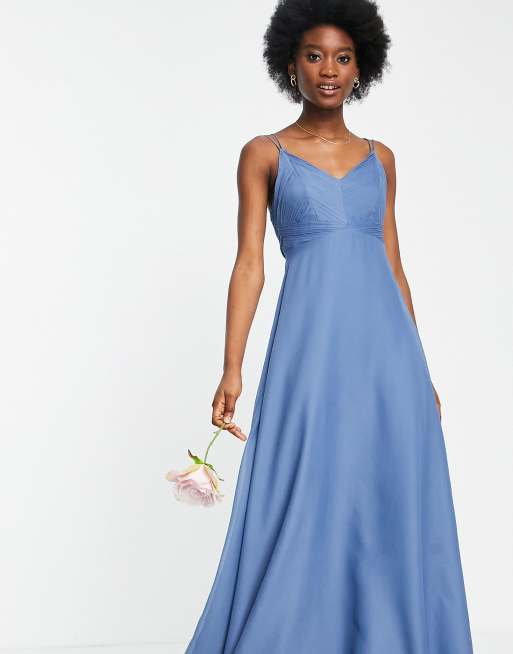 Asos Design Bridesmaid Pinny Maxi Dress With Ruched Bodice And Layered Skirt Detail In Blue Asos Asos Bridesmaid Dress Short Bridesmaid Dresses Maxi Bridesmaid Dresses